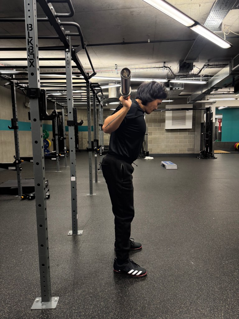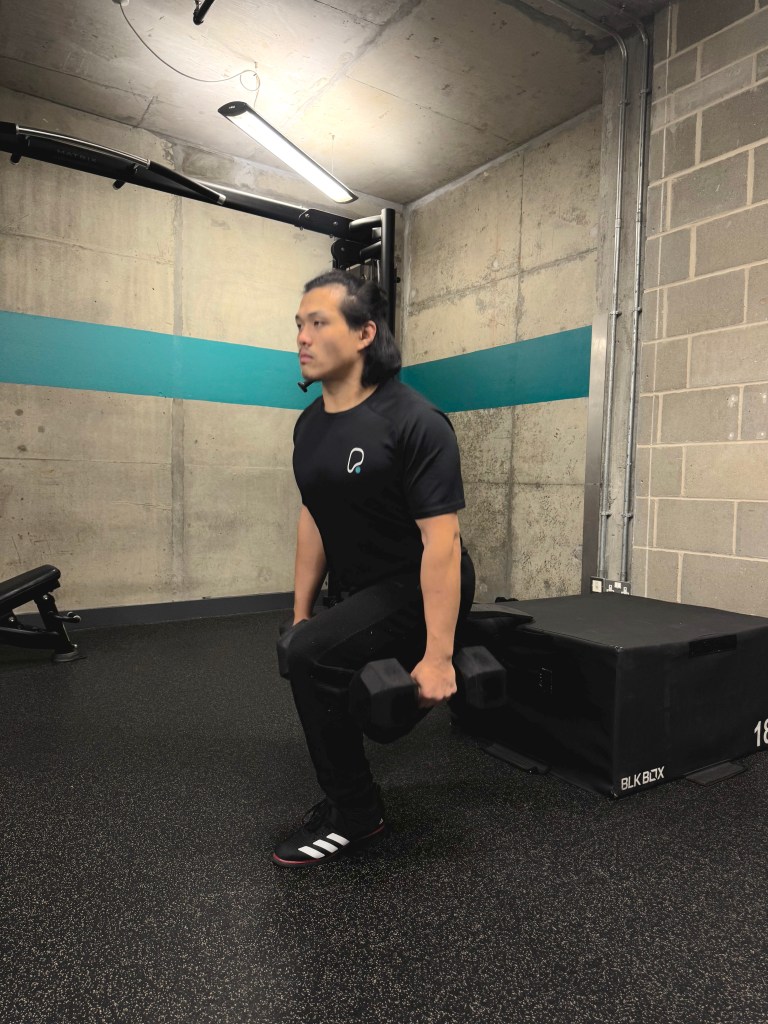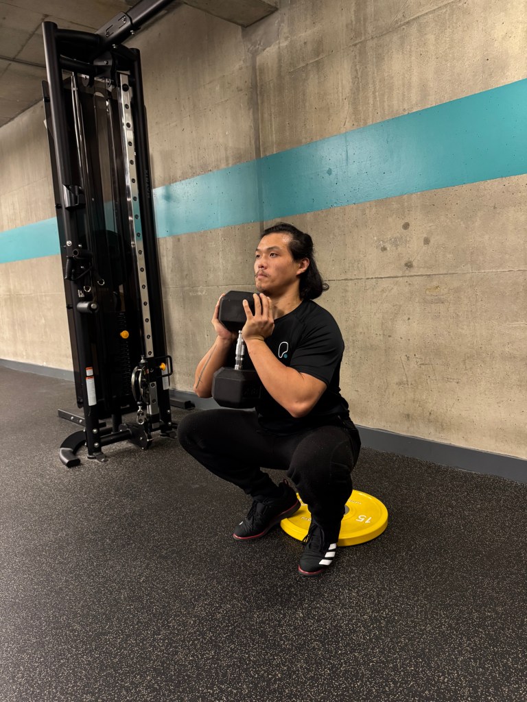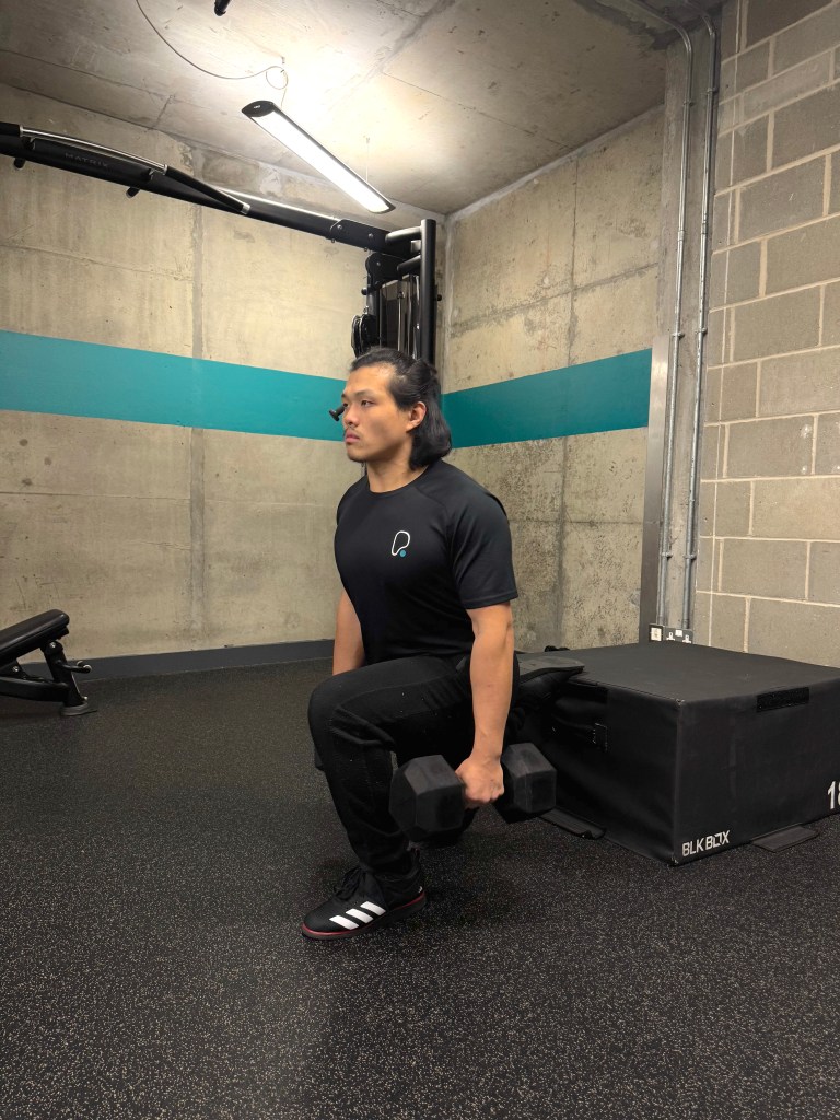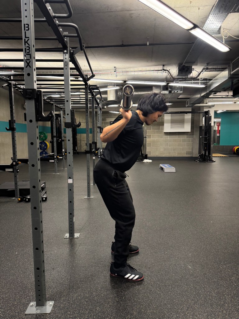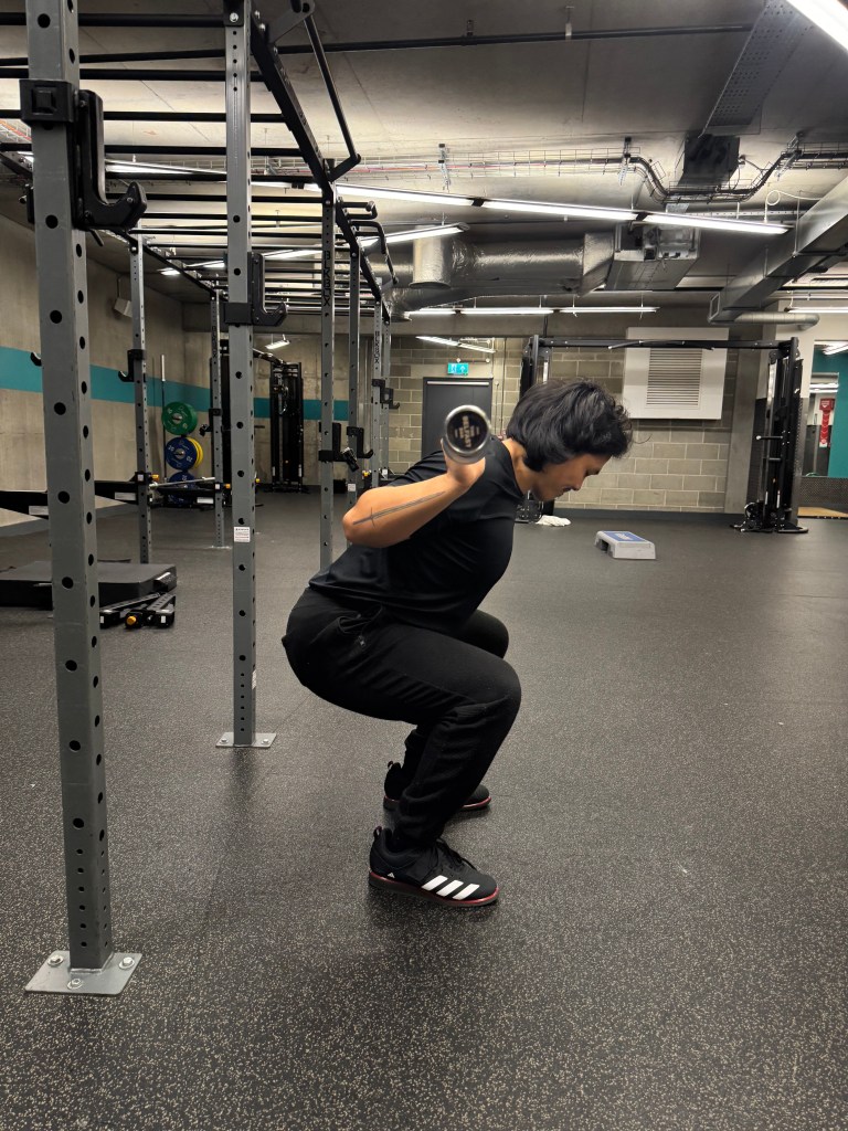 Goblet squats – By having the weight in front of you it will be easier for you to sit your hips further back without losing balance. This is a great way for you to get used to and get comfortable in the upright position you will find yourself squatting with a high bar.