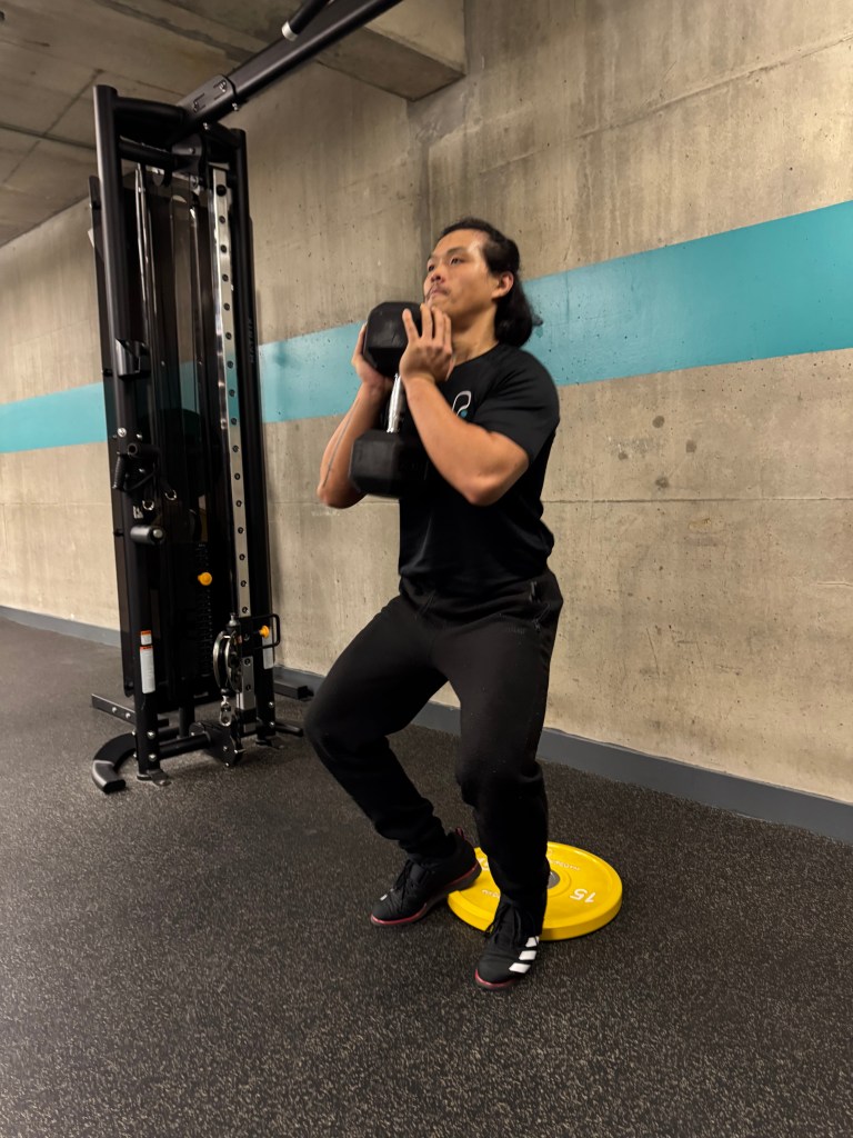 For some of you it might be beneficial to add in banded dorsiflexion training. This trains the muscle which pulls your toes towards your knees. Set up a resistance band low to the ground. Sit with the band wrapped around the knuckles of your toes. Pull your toes to your knees with resistance for 3 sets of 8-12. Training the agnostic muscles will help you build stability and ROM in your ankles.