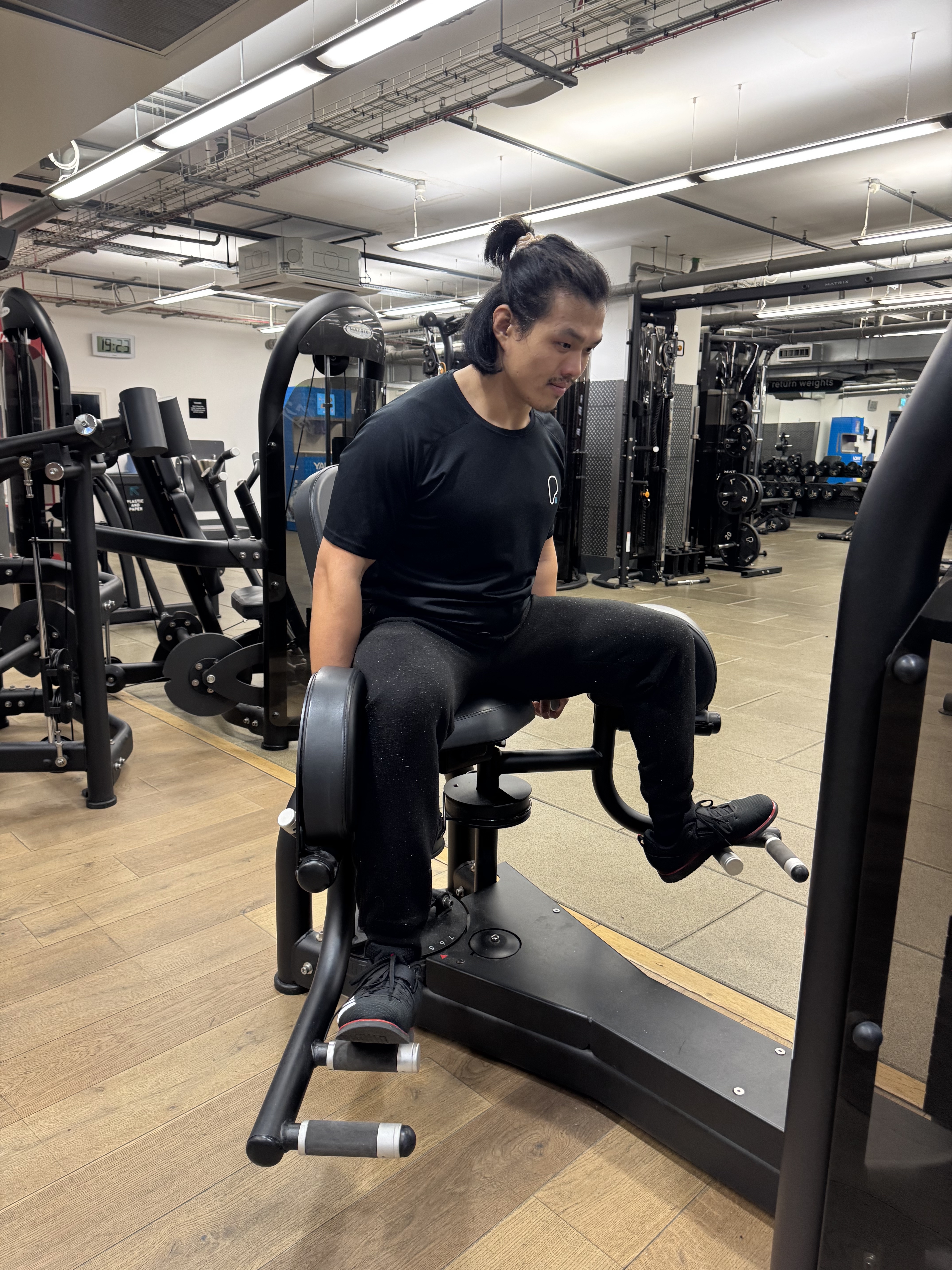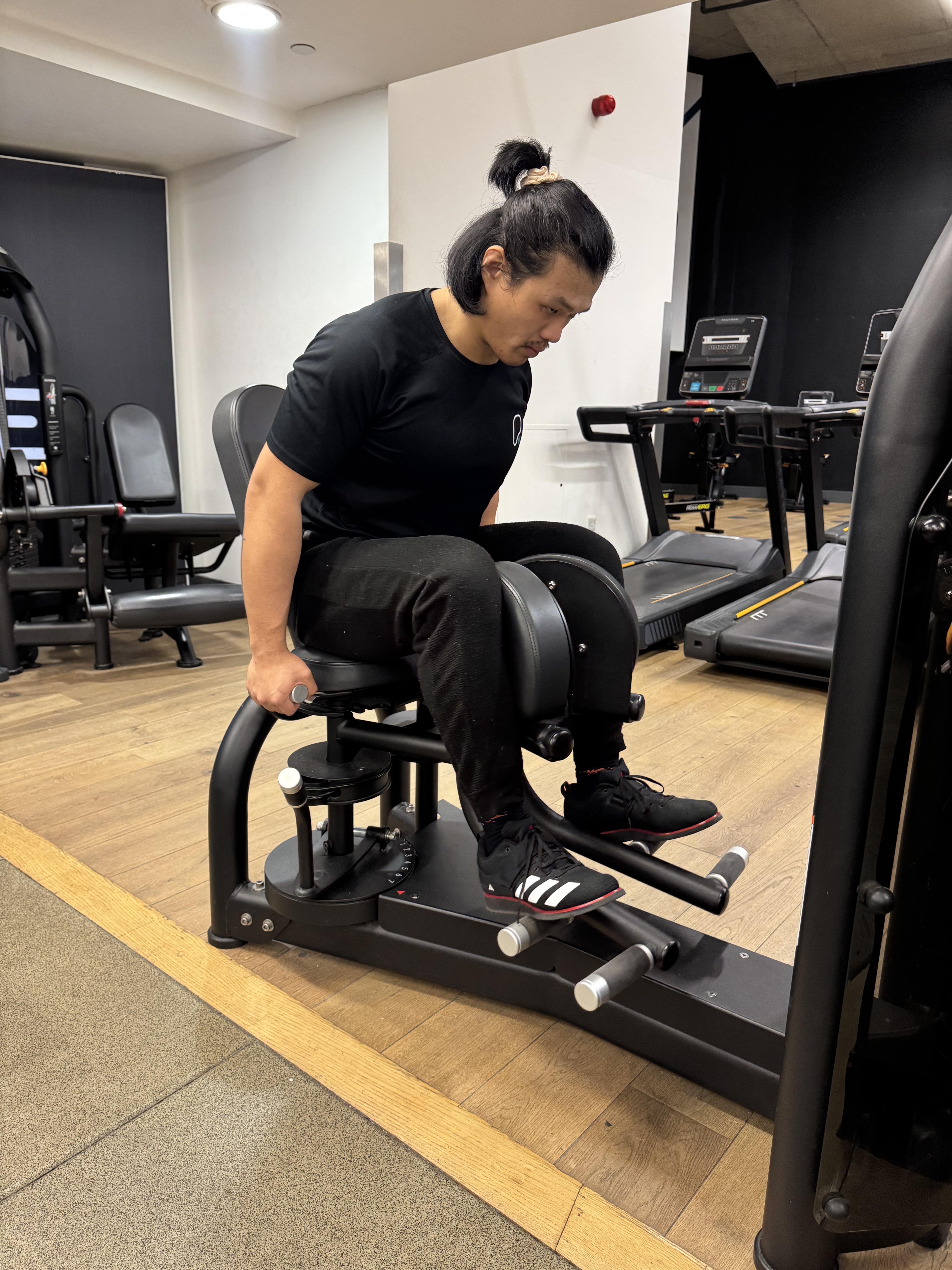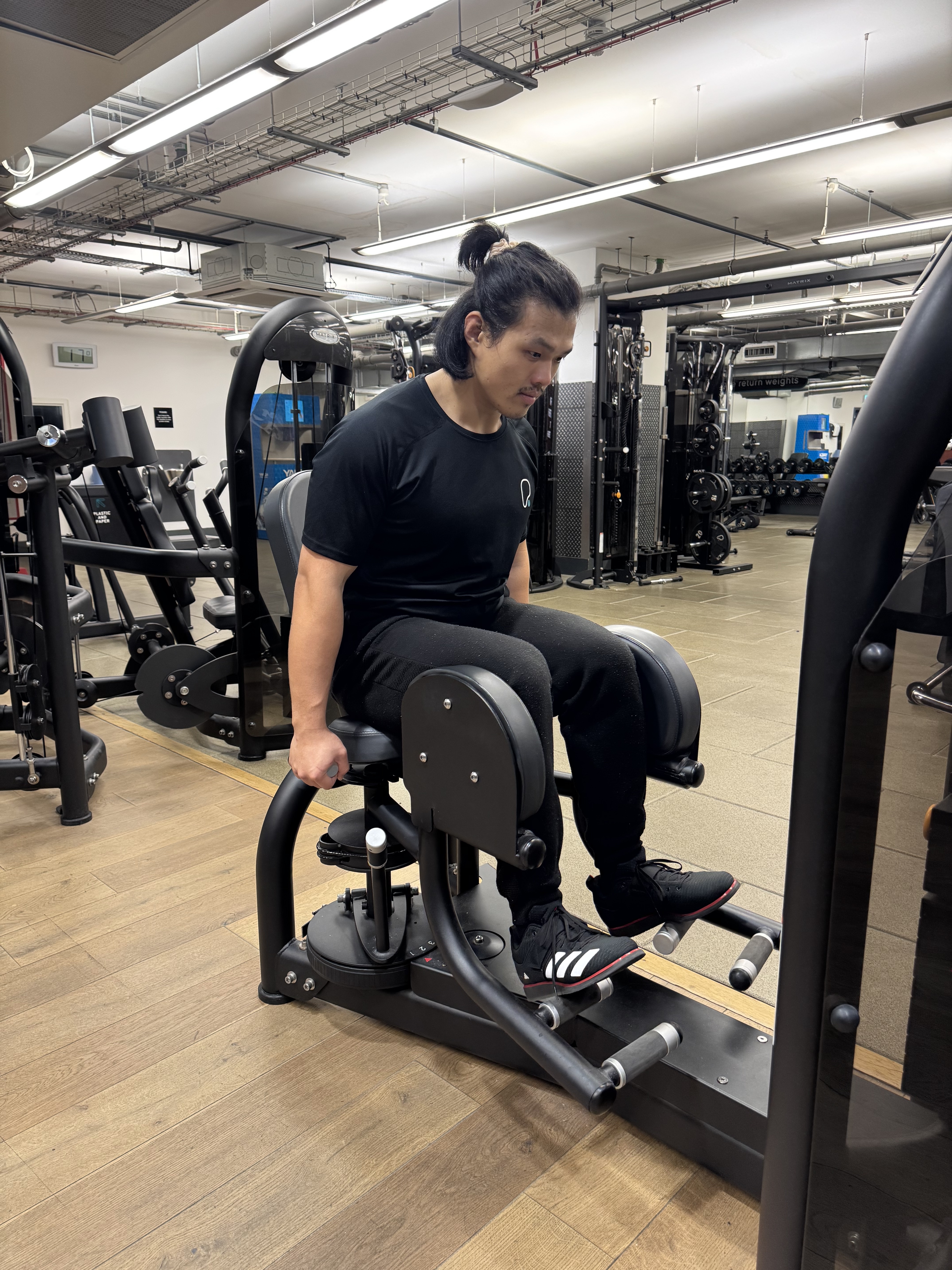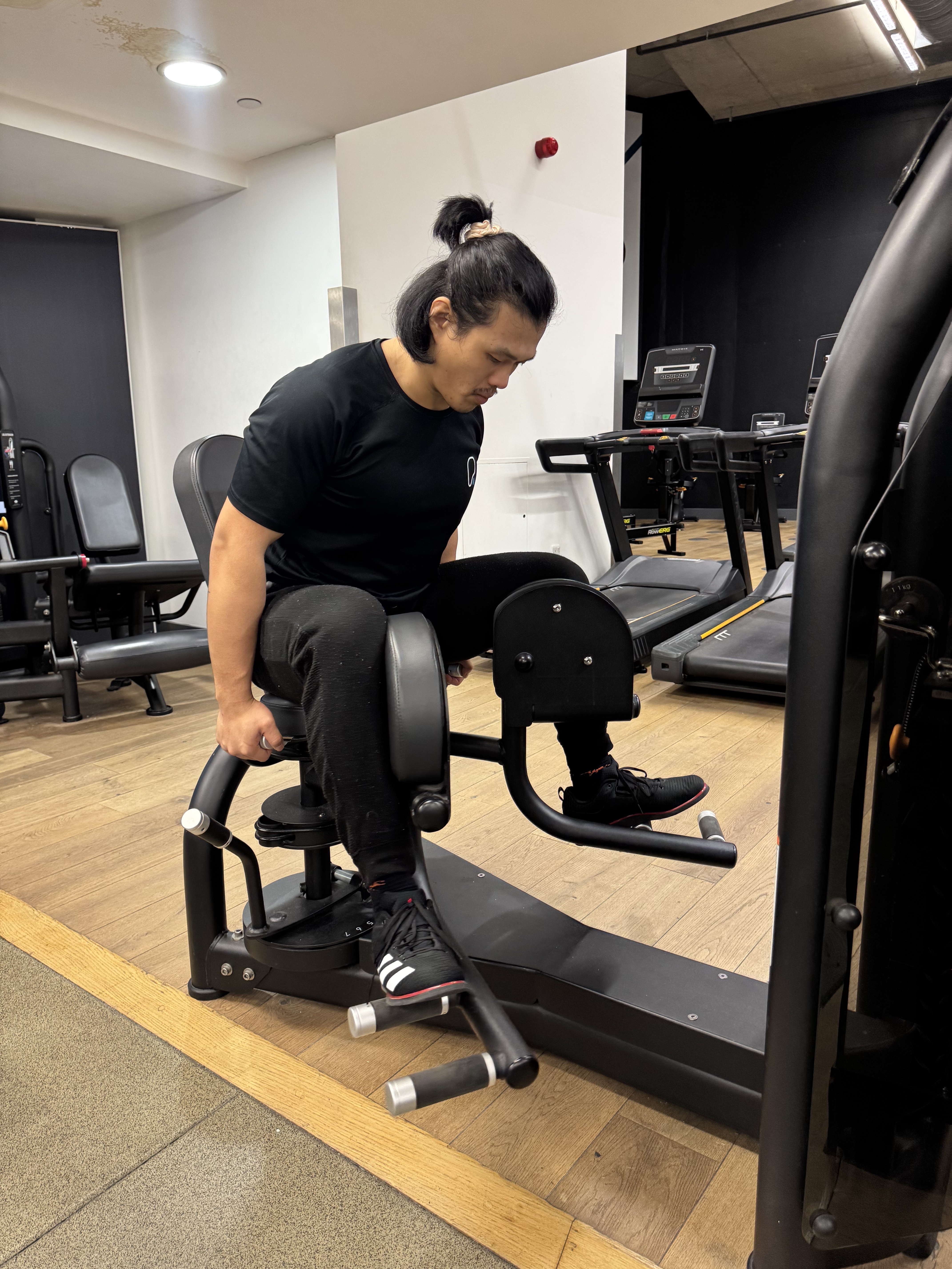 Hip adduction abduction – Strengthen hip flexors to prevent knee buckling or flaring during heavy sets, preventing knee injuries and unnecessary stress on the low back, 3 sets of 8-12 reps or 2 sets of AMRAP. I recommend holding the contraction for an isometric as well as leading forward on the machine with a braced core to simulate the position your torso would be in a squat.