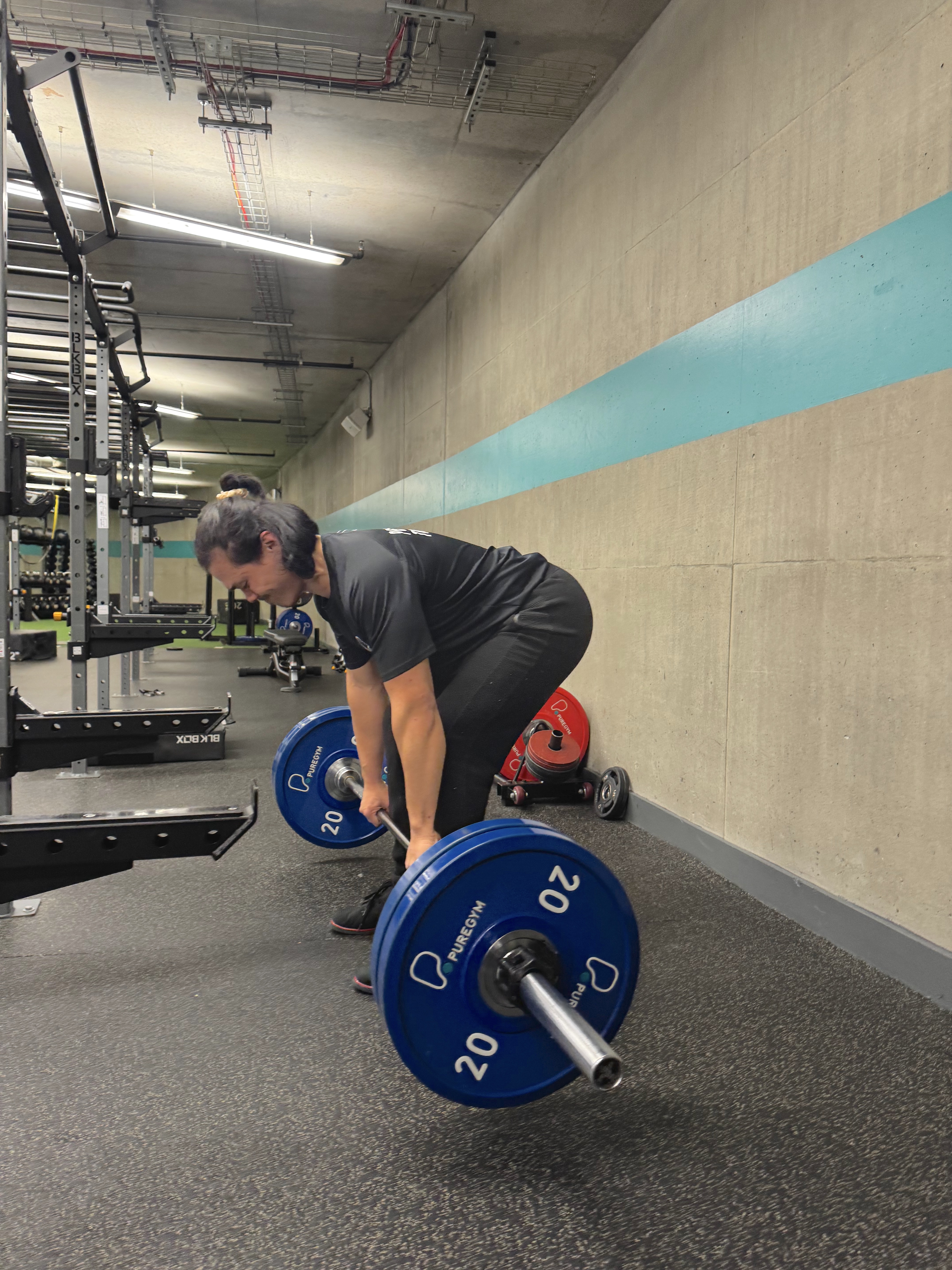 Step 4: Pause just before the weight touches the ground. As you come up think “push the ground away from you”,
