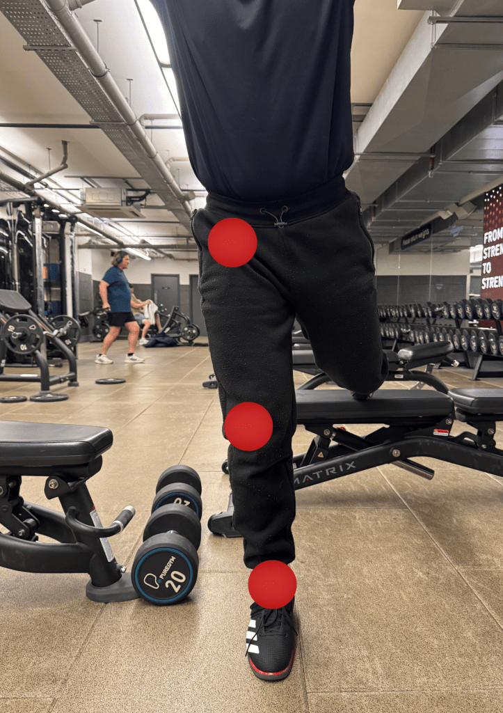 Step 1: Find a platform no higher than the length of your femur, this will ensure you can get a full range of motion without unnecessary stress on your hip flexor or ankle.